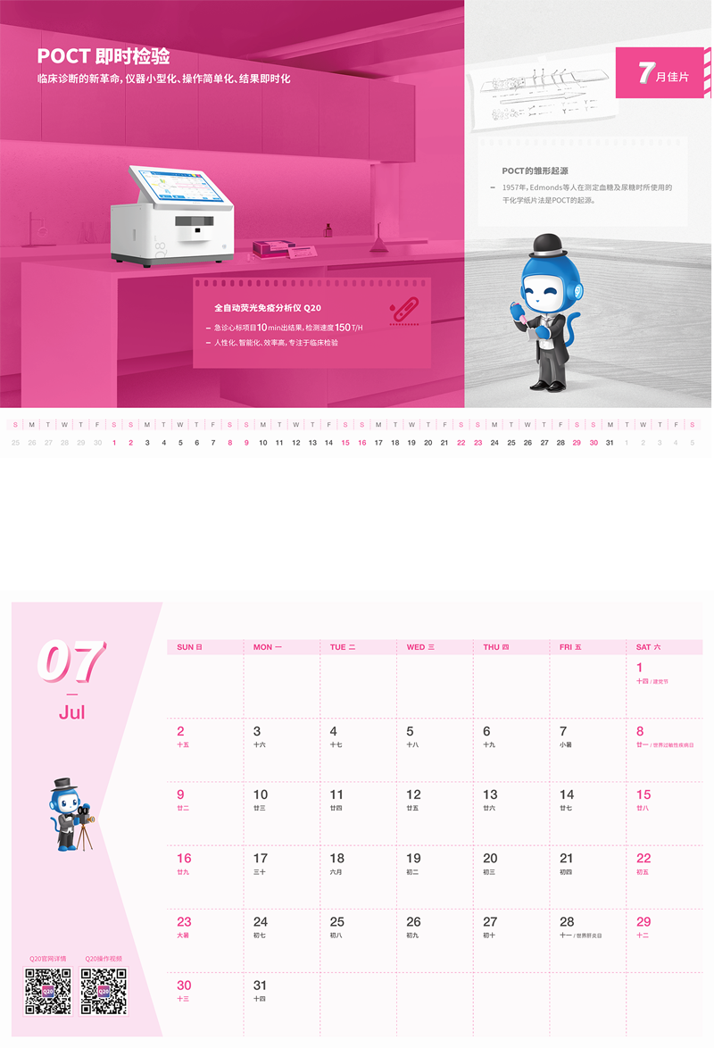 The 2023 desk calendar designed for zybio is themed "zybio Screening Room. Appointment with Great Films in 2023". It weaves together milestone stories in the diagnostic field through film reviews as the narrative thread. By drawing analogies between history and the present, it introduces the technical advantages, award-winning achievements, and social responsibilities of the key products across zybio's entire production line. Each month features a different color representing a production line, stories spanning eras of IVD (in vitro diagnostics). The entire desk calendar is full of fun, enabling better communication with customers and thus enhancing the brand's favorable image.