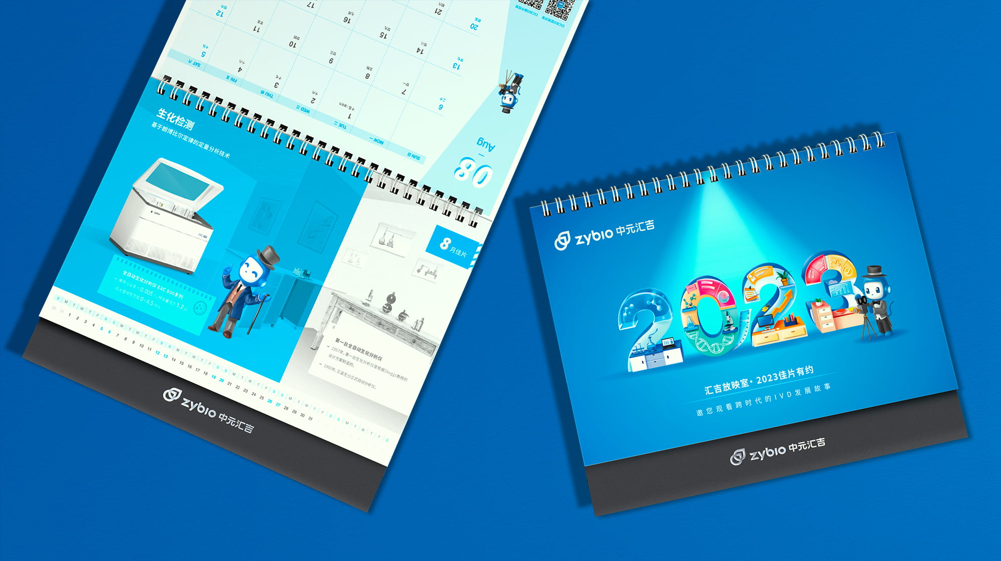 The 2023 desk calendar designed for zybio is themed "zybio Screening Room. Appointment with Great Films in 2023". It weaves together milestone stories in the diagnostic field through film reviews as the narrative thread. By drawing analogies between history and the present, it introduces the technical advantages, award-winning achievements, and social responsibilities of the key products across zybio's entire production line. Each month features a different color representing a production line, stories spanning eras of IVD (in vitro diagnostics). The entire desk calendar is full of fun, enabling better communication with customers and thus enhancing the brand's favorable image.
